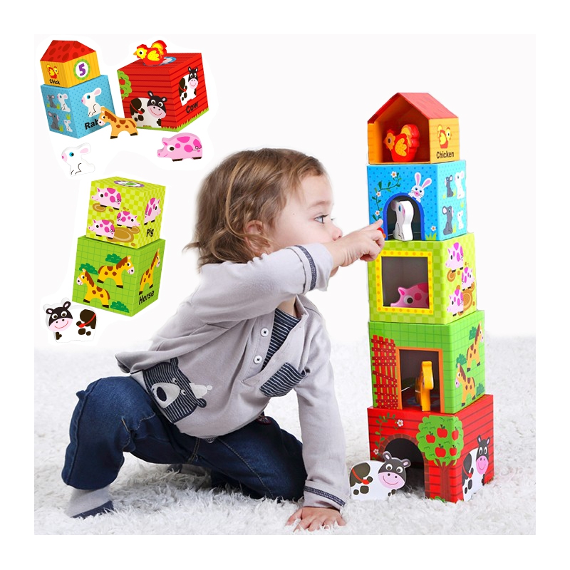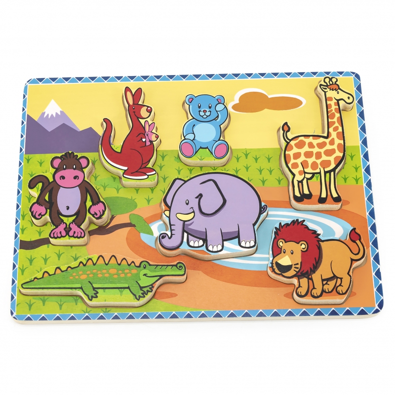 TOOKY TOY Medinės kaladėlės Dėlionės Gyvūnai Montessori 9 vnt.