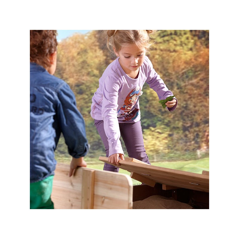 Žaisti medinėje AXI smėlio dėžėje yra kiekvieno vaiko svajonė. Smėlio dėžėje yra du suolai, ant kurių vaikai gali atsisėsti ar pasidėti žaislus. Dėl aukštos kokybės, tvirtos konstrukcijos, atsparios oro sąlygoms, smėlio dėžė puikiai atrodys bet kuriuo metų laiku.