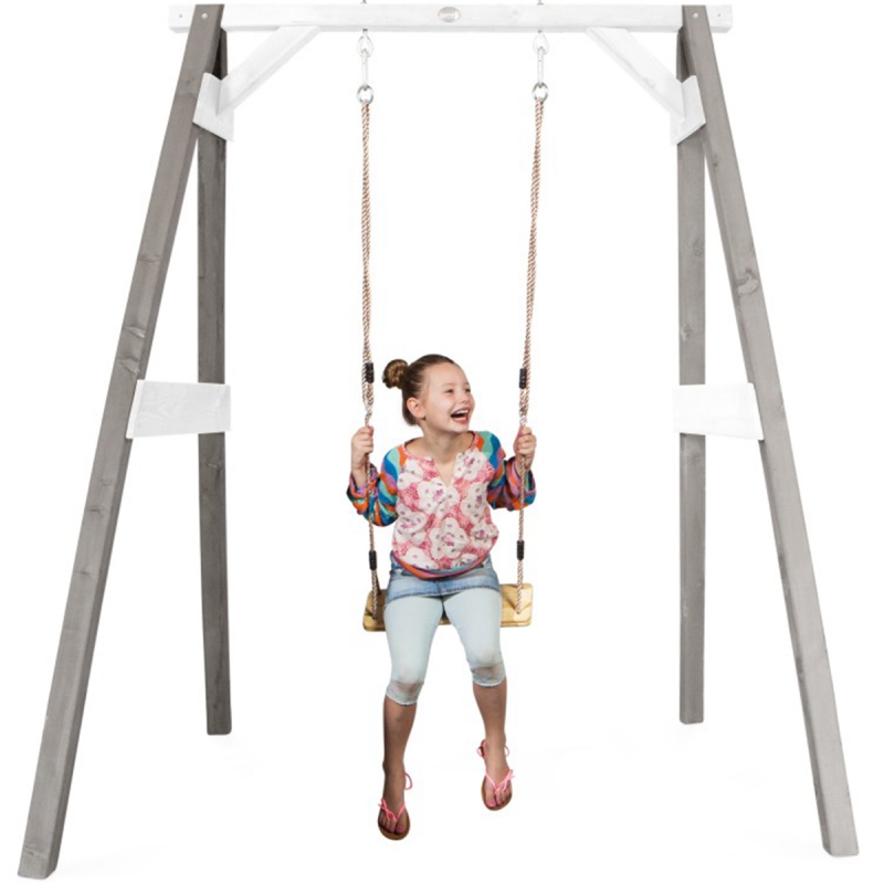 Axi Pilkos spalvos medinių sūpynių komplekto žaidimų aikštelė Medinių sūpynių komplektą Axi sudaro vienos tradicinės sūpynės. Dėl savo plataus ploto ji gali suteikti nepamirštamų mankštos akimirkų, juoko ir linksmybių daugelį metų, kaip ir bet kuris kitas Axi gaminys.