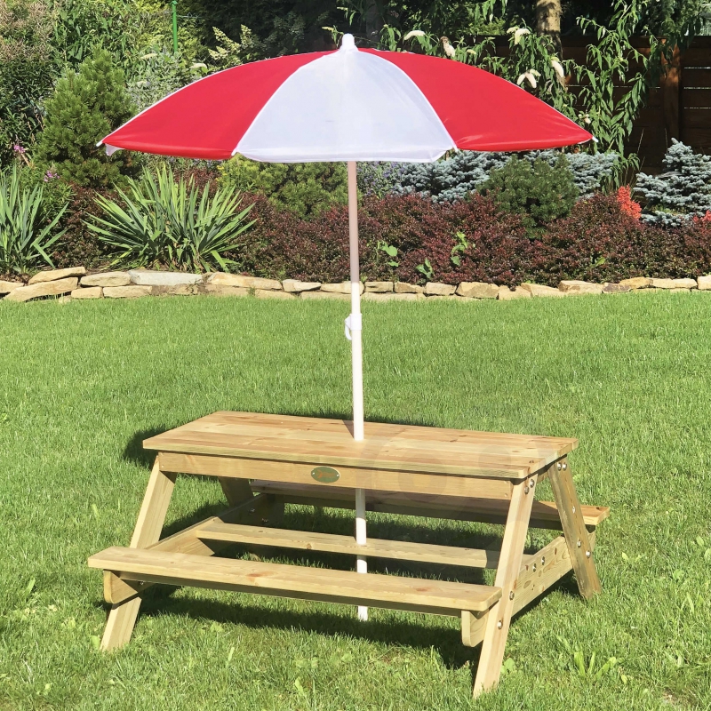 Medinis iškylų stalas iš garsaus prekės ženklo Classic World. Produktas pagamintas iš aukštos kokybės medienos , dažytas netoksiškas impregnavimas, visiškaisaugus vaikams. Suolai ir stalas yra susukti, o tai užtikrina tvirtesnę konstrukciją. Be to, ant stalo taip pat yra skėtis, apsaugantis nuo saulės. Sėdėjimas šalia ir kalbėjimas padedalavinti įgūdžius, plėsti žinias ir pasitikėti savimi.