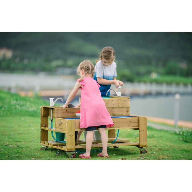 Stalo vandens lygiai iš CLASSIC WORLD serijos EDU padės vaikams išmokti vandens, tekančio iš viršaus ir apačios, principų. . Ant vandens stalo yra 3 skirtingo aukščio rezervuarai. Vaikai gali leisti vandenį iš čiaupo ir stebėti, kaip teka vanduo. Suspaudžiamas rutulinis siurblys leidžia vandenįgrąžinti atgal į viršutinį bakąiš apatinio bako. Tokio tipo rinkiniai leidžia vaikui pažinti iratrasti pasaulį ir tuo pačiu ilgiau sutelkti dėmesį!