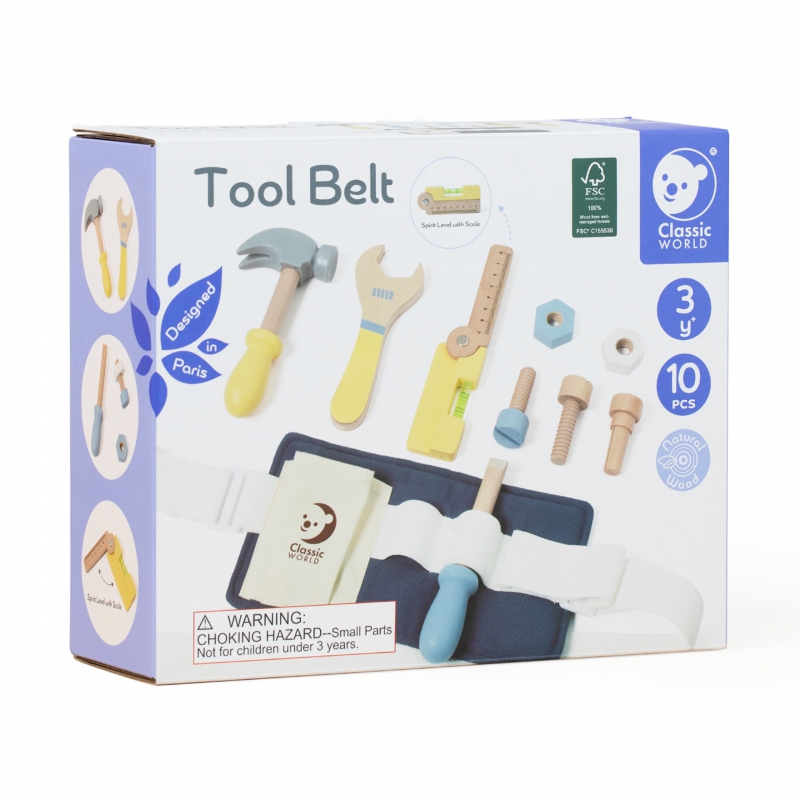 Prekės ženklo CLASSIC WORLD mažasis „pasidaryk pats“ diržų rinkinys sužadins vaikųvaizduotę. Rinkinį sudaro 13 dalių – viskas, ko reikia jūsų mažyliui, kad galėtų atlikti mechaniko vaidmenį. Vaikas išmoks įsukti ir kalti vinis, taip pat tobulins savo kūrybiškumą ir motoriką.