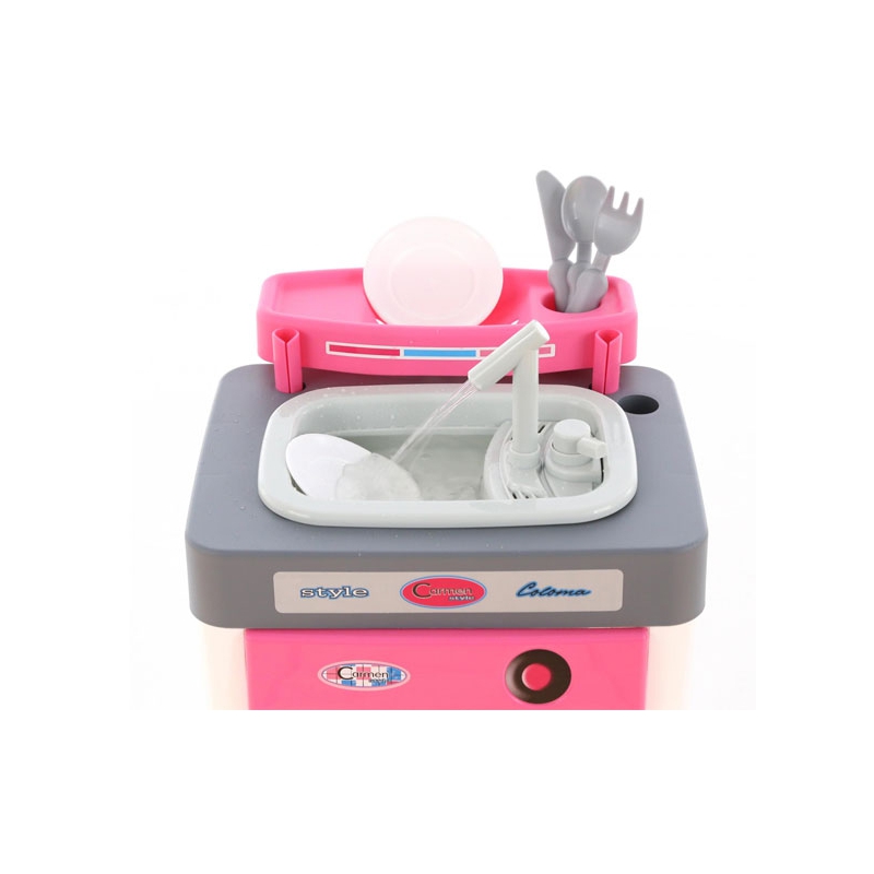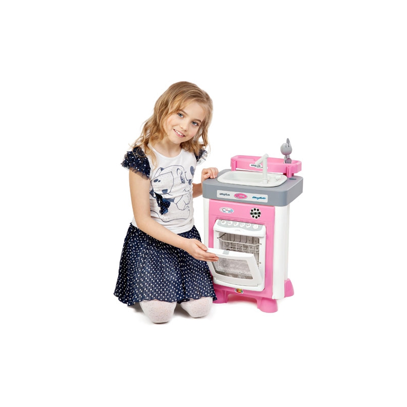 Elektroninė indaplovė su vandens cirkuliacija iš žinomos Polesie įmonės suteiks daug džiaugsmo kiekvienam vaikui. Pripildžius rezervuarą durelėse ir įjungus indaplovę, tarp dviejų skaidrių sienelių išsitaško vanduo, suteikdamas tikro mašinos veikimo efektą, o viduje esantys indai lieka sausi. Įpylus vandens į kriauklę ir atsukus maišytuvąiš čiaupo bėgs tikras vanduo!