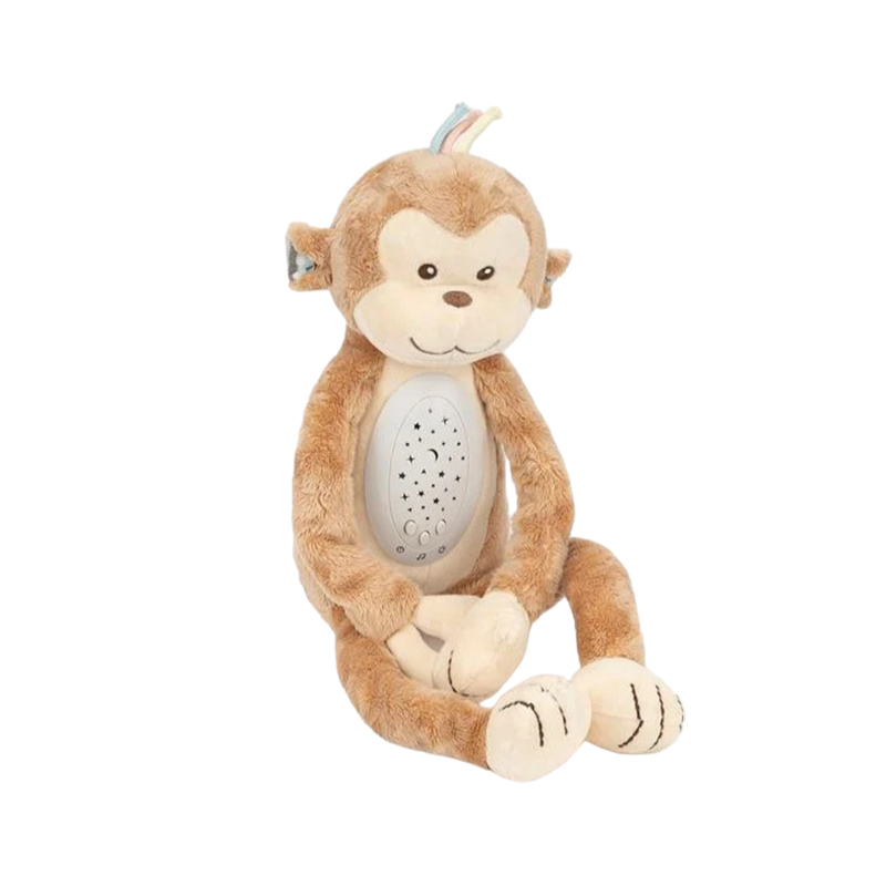 Pliušinė miegančioji beždžionė bus žavinga miego palydovėjūsų kūdikiui. Talismanas puikiai tiks kūdikiaiirvyresnivai, kurie nemėgsta užmigti patys. Beždžionė bus tobulas gerų sapnų draugas ir gelbėtojas nuo pabaisų spintoje. Mielasis žaisliukasyra funkcijųkad jį įjungus išgirsite nuostabias melodijas, o pilvas ims mirgėti skirtingomis spalvomis. Žaislas taip pat turi net 10 skirtingų lopšinių. Žaislas tinka kūdikiams, todėl užpildytas minkšta vata. Be to, meškiuką galimasaugiai irlengvai išvalyti nuėmusmechanizmą ir lengvai jį surinkus. Tai suteikia galimybę vyresniam vaikui žaislą naudoti kaip talismaną be mechanizmo. Kiekvienas vaikas įsimylėsbeždžionėlę!