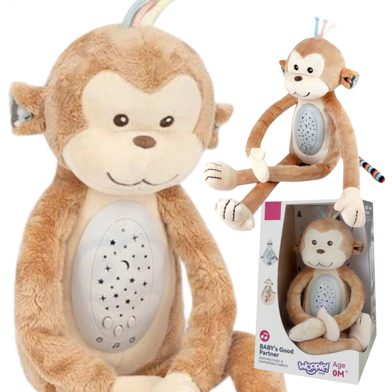 Interaktyvus mielas žaislinis projektorius WOOPIE BABY 2 viename miegančios beždžionės