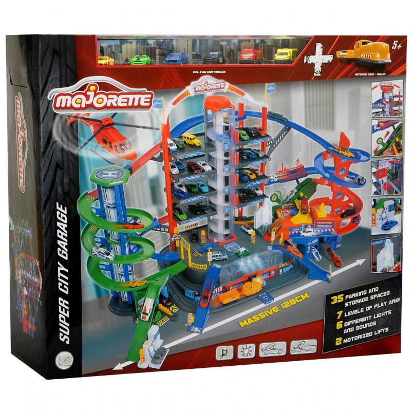 MAJORETTE Didelis garažas Super City 7 lygių automobilių trasa