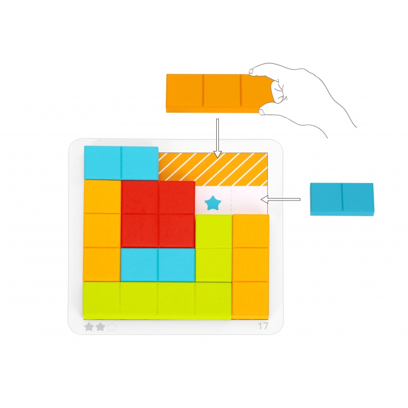 - – rinkinį sudaro 25 elementai: įvairių dydžių spalvingi blokai ir žaidimų lentos