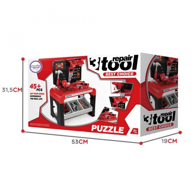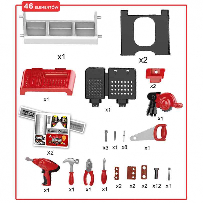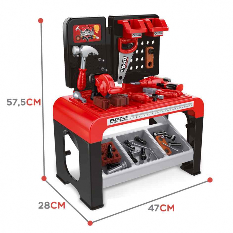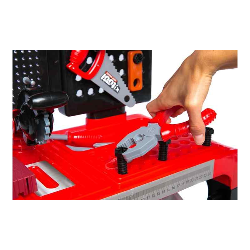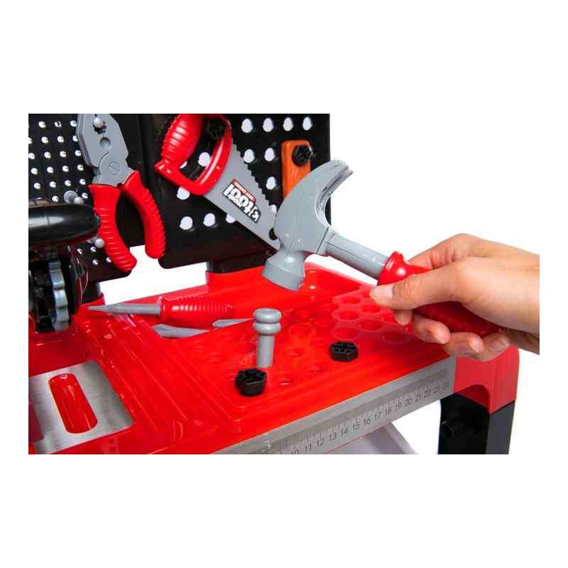 Daugiai įrengtų prekių ženklų dirbtuvės WOOPIE – taipuikus rinkinys, sudarytas iš daugybės raudonų elementų, sukurtas kruopščiai, skiriant dėmesį detalėms. Jos dėka kiekvienas gali tapti profesionalu ir pjauti, gręžti, prisukti ir surinkti. Komplekte yra daug lentynų, spintelių ir pakabų, ant kurių galėsite pasidėti įrankius, taip išmokydami vaiką palaikyti tvarką žaidimo ir darbo vietoje. Šio žaislo dėka Jūsų vaikas susipažins su darbo paslaptimis dirbtuvėse ir taip pat sužinos, kam naudojami individualūs įrankiai.