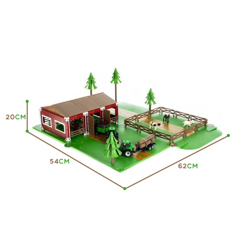 WOOPIE ūkyje su gyvūnais + 2 traktoriuose yra net102 elementai, įskaitant: gyvuliai, ferma, arklidė, medžiai ir traktoriai. Rinkinio surinkimas yra vaikiškas žaidimas! Tiesiog sujunkite 4 lentos dalis naudodami žiedus, esančius jų jungtyse. Visi smulkūs elementai, pvz., medžiai, įspaudžiami į lentą, kad žaidimo metu nenuvirstų. Tai bus puikus iššūkis vaikams, kurie mėgsta statyti konstrukcijas ir gerai jaustis žaidžiant rankomis. Prekės pakuotė aprūpinta patogia rankena, kurios dėka vaikas gali visur su savimi pasiimti savo mėgstamą žaislą. Produktas skirtas vaikams vyresniems nei 3 metų amžiaus.