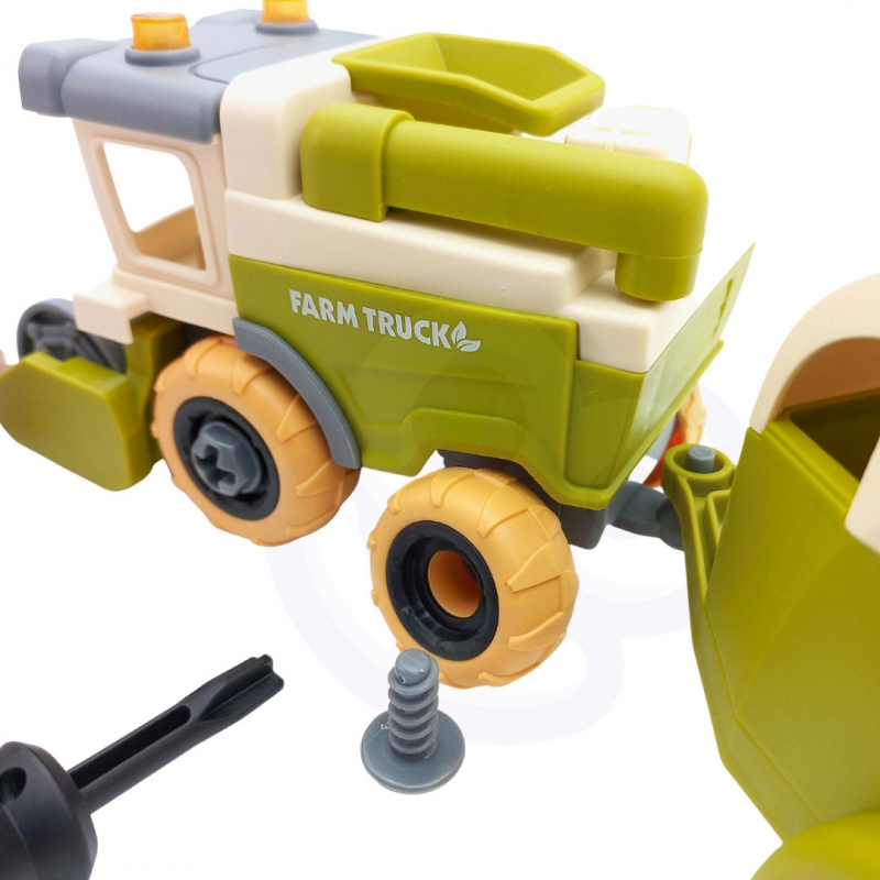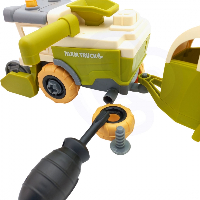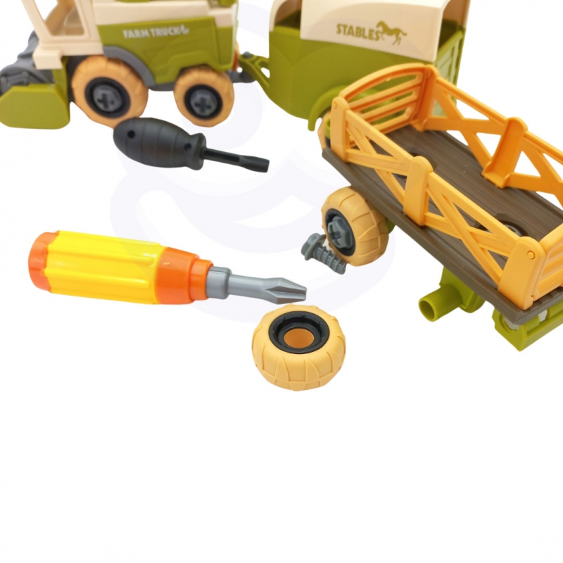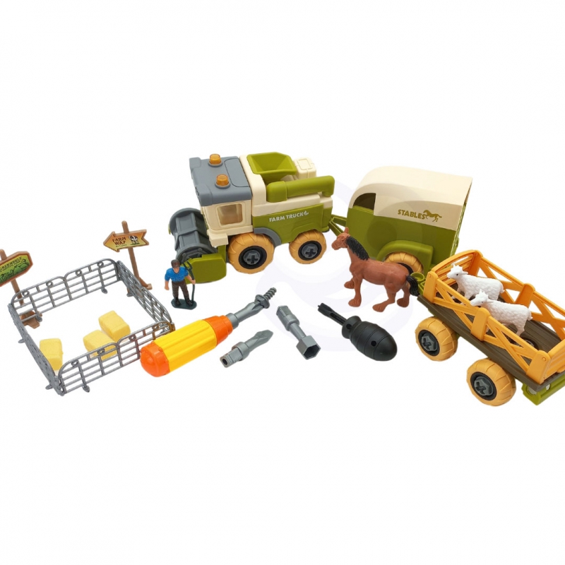 Ūkio surinkimo statybos rinkinys yra pilnas rinkinys, skirtas „pasidaryk pats“ ir ūkio entuziastams. Vaikui reikia kombaino ir dviejų priekabų. Vartymas bus lengvas jūsų vaikui, tačiau reikalaujasusikaupimo. Pagalba rinkinyje yra atsuktuvai su skirtingais antgaliais, kad vaikas galėtų išbandyti įvairius variantus. Ūkio atmosferą kuria arklio, ūkininko, 2 avių, fermos figūrėlės, 2 ženklai ir šienas Rinkiniai ūkininkui. Žaislas lavins rankinius įgūdžius, vadinamuosius „smulkiąją motoriką“ – rankų judėjimą. Žaisdamas ūkį jūsų mažylis išplės savovaizduotės ir kūrybiškumo ribas.